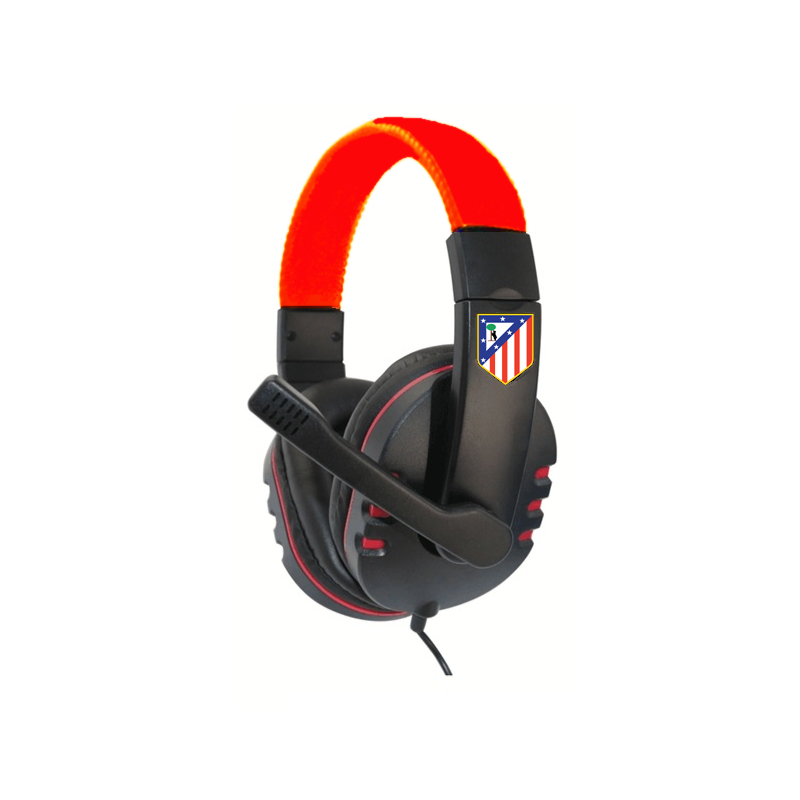 Auriculares gaming oficiales del Atlético de Madrid con micrófono ajustable, sonido envolvente y diseño ergonómico. ¡Juega y anima al Atleti con estilo!