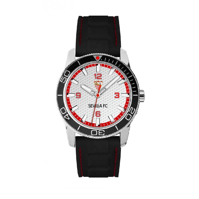 Este reloj de caballero del Sevilla FC combina un diseño elegante con un carácter deportivo que lo convierte en el accesorio ideal para cualquier aficionado. Su correa negra con costuras rojas aporta resistencia y un estilo firme y moderno.